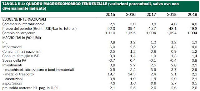 Se applicate la stessa logica all'anno precedente, vedrete che il dato annuale del 2014 è di 1536 miliardi (dovreste essere in grado di localizzarlo sulla tabella), e quindi il tasso di crescita nel 2015 è stato dello 0.6% (colonna 9) come qui previsto a tempo debito (notate peraltro che accanto a previsioni giuste ce ne erano anche di sbagliate: la vita è fatta così e magari un giorno ne parliamo).