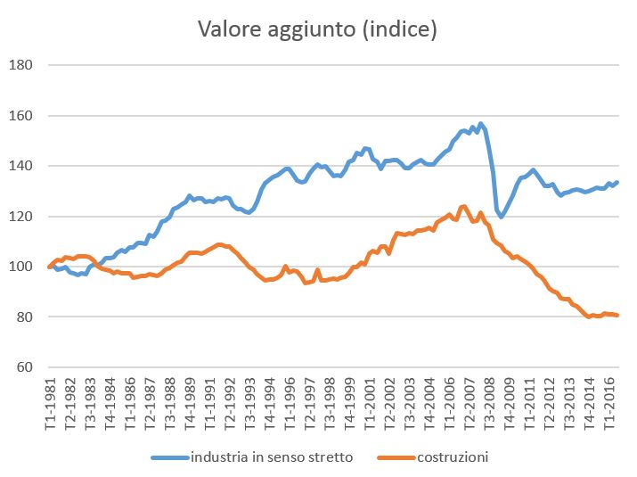 L'indice del valore aggiunto nel manifatturiero e nelle costruzioni:
